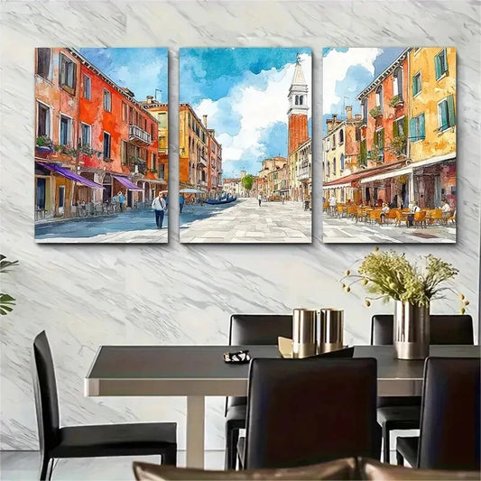 3pcs Travel-Inspired Cityscape Italian Scenery Metal Print Ready to Hang Art