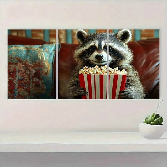 3pcs Funny Raccoon Popcorn & Movie Ticket Metal Print Ready to Hang Art