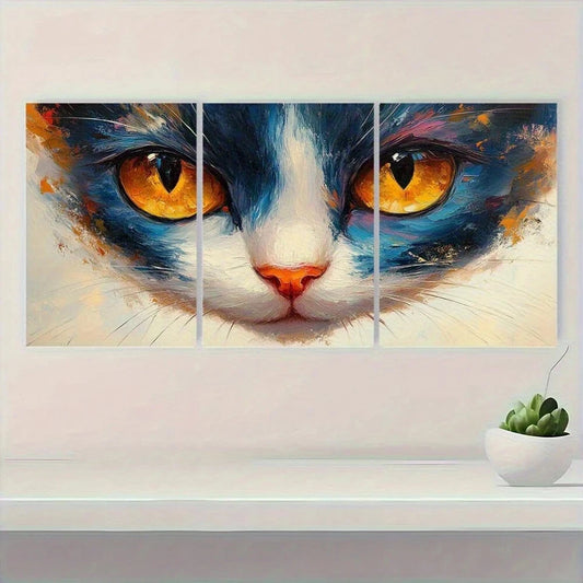 3pcs Vibrant Flowers & Cats Scandinavian Folk Metal Print Ready to Hang Art