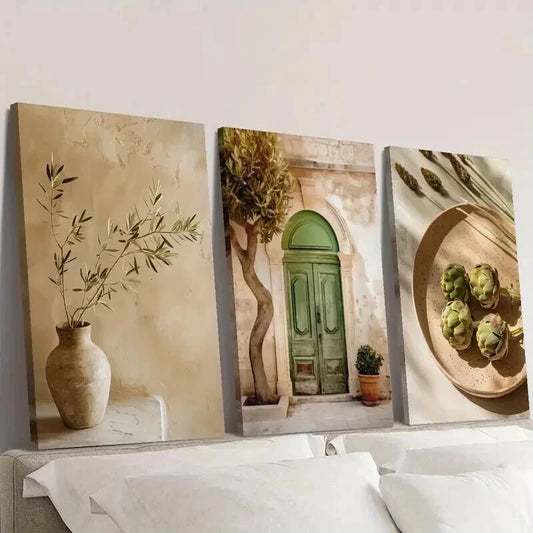 3pcs Italian Vintage Olive Tree & Vase Wall Art Set Canvas Framed 40x60cm - High Quality Print 100% Australian Made Wall Canvas Ready to Hang