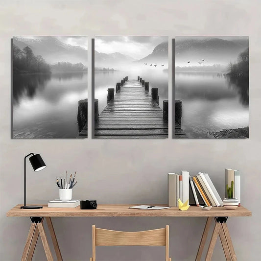 3pcs Black and White Lake Flying Birds Metal Print Ready to Hang Art