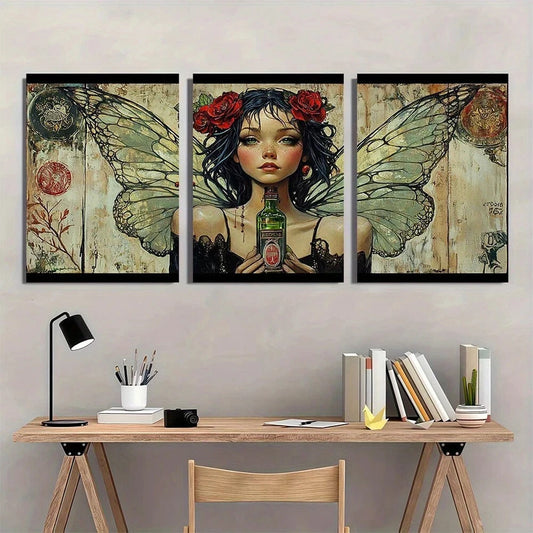 3pcs Green Fairy with Roses & Absinthe Metal Print Ready to Hang Art