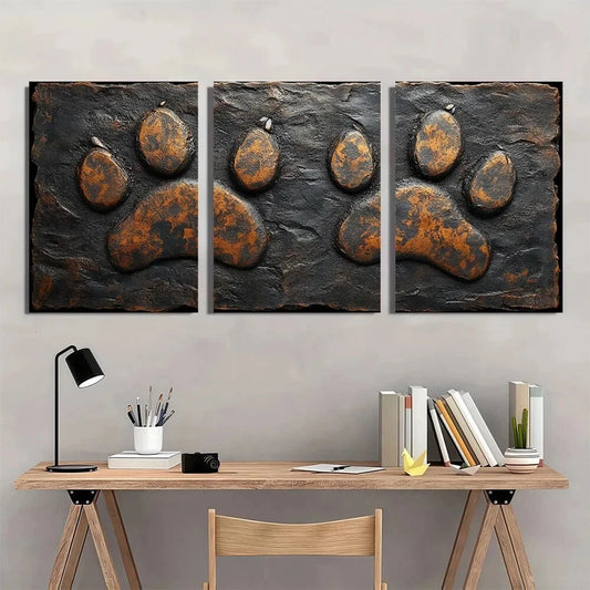 3pcs Dog Paw Charcoal Brown and Black Metal Print Ready to Hang Art