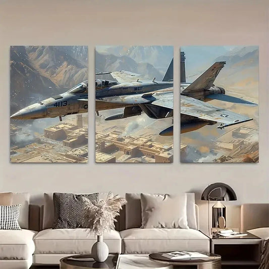 3pcs Military Aircraft Canvas Wall Art Metal Print Ready to Hang Art