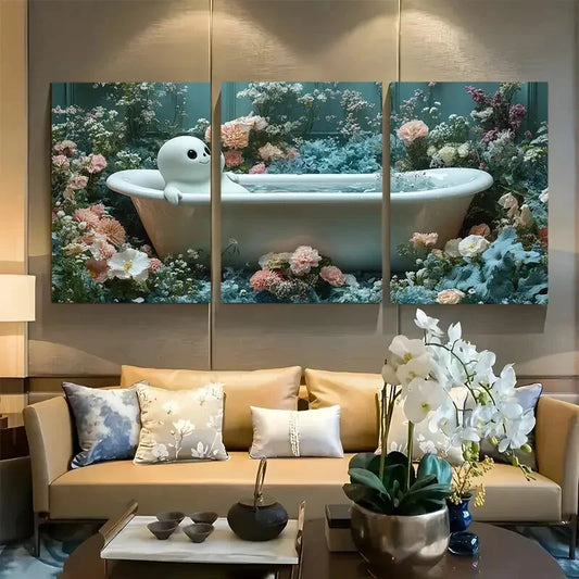 3pcs Whimsical Floral Bathtub Scene Spooky Metal Print Ready to Hang Art