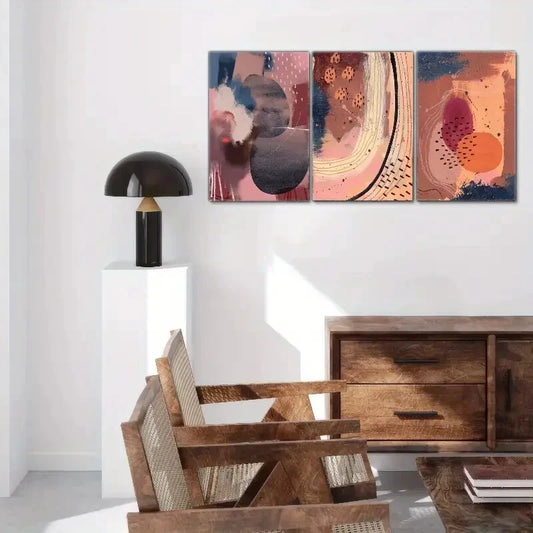 3pcs Decorative Poster with Geometric Patterns Metal Print Ready to Hang Art