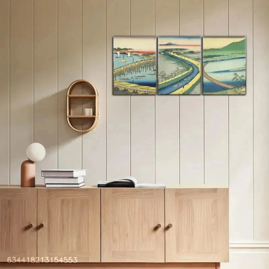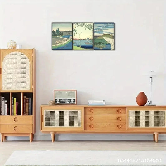 3pcs Japanese Landscape Vibrant Mountain Scenes Metal Print Ready to Hang Art