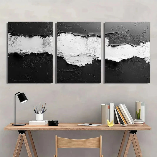 3pcs Abstract Black & White Modern Design Metal Print Ready to Hang Art