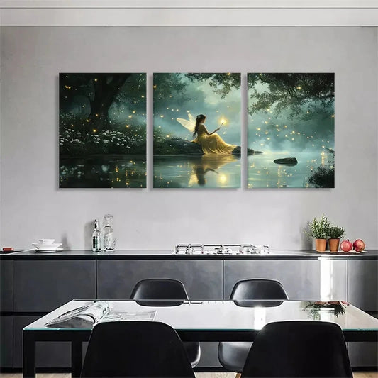 3pcs Fairy in Enchanted Forest Glowing Perfect Wall Art Set Canvas Framed 40x60cm - High Quality Print 100% Australian Made Wall Canvas Ready to Hang