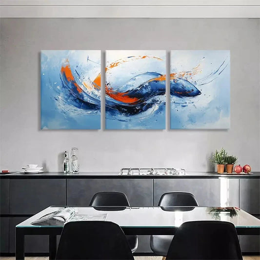 3pcs Blue and Orange Swirling Patterns Perfect Wall Art Set Canvas Framed 40x60cm - High Quality Print 100% Australian Made Wall Canvas Ready to Hang