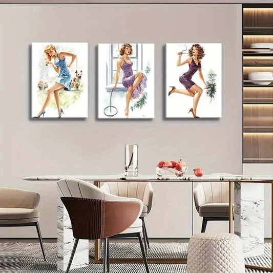 3pcs Vintage Pin-Up Girl Retro Glamorous Perfect Wall Art Set Canvas Framed 40x60cm - High Quality Print 100% Australian Made Wall Canvas Ready to Hang