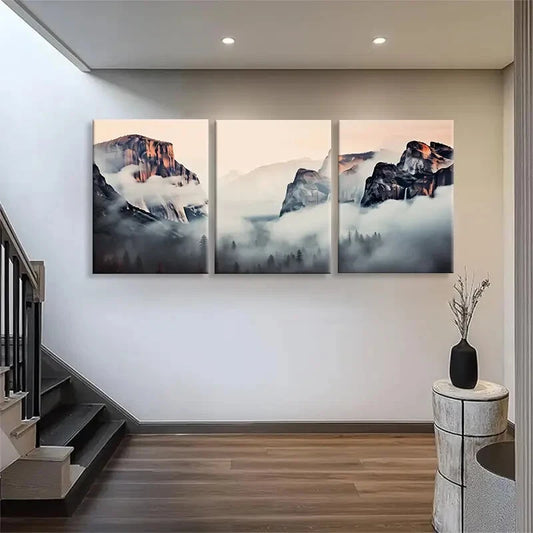 3pcs Foggy Scenic View Golden Mountain Perfect Wall Art Set Canvas Framed 40x60cm - High Quality Print 100% Australian Made Wall Canvas Ready to Hang