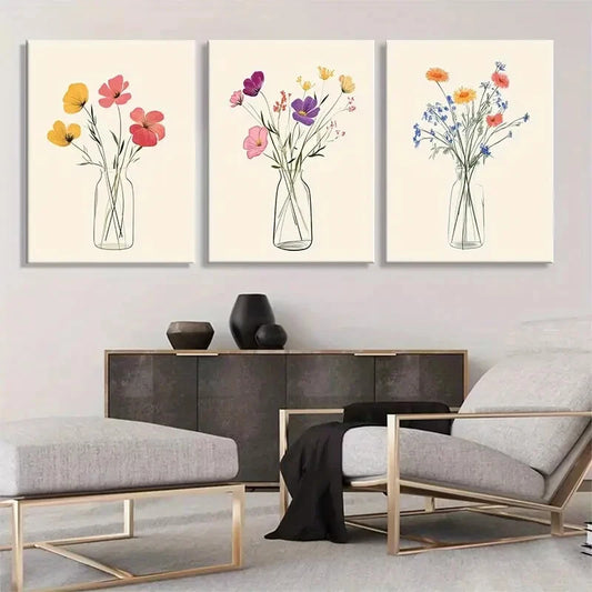 3pcs Floral Vase Colorful Flowers Perfect Wall Art Set Canvas Framed 40x60cm - High Quality Print 100% Australian Made Wall Canvas Ready to Hang
