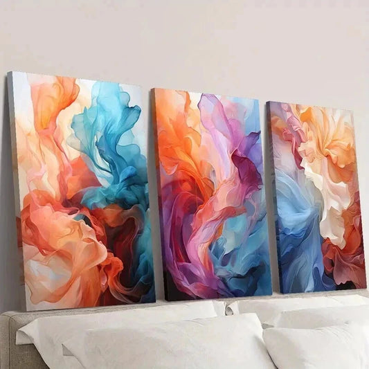 3pcs Abstract Colorful Smoke Designs Wall Art Set Canvas Framed 40x60cm - High Quality Print 100% Australian Made Wall Canvas Ready to Hang