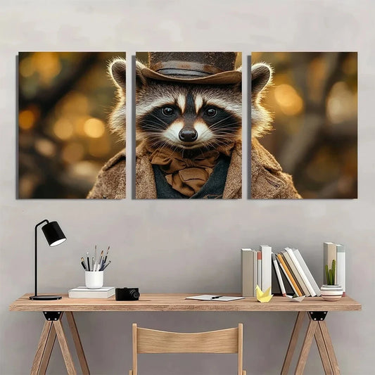 3pcs Vintage Gentleman Raccoon Modern Style Metal Print Ready to Hang Art