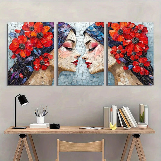 3pcs Vibrant Mosaic Colorful Floral and Abstract Metal Print Ready to Hang Art