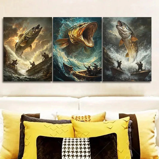 3pcs The Fish Jumped Out Of The Water Metal Print Ready to Hang Art