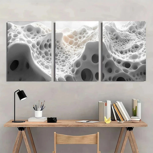 3pcs Dimensional Gray and White Painting Metal Print Ready to Hang Art