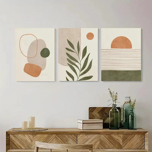3pcs Abstract Sage Green Geometric Line Print Metal Print Ready to Hang Art