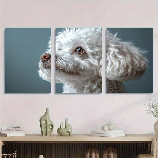 3pcs Elegant White Poodle Brown Eye Metal Print Ready to Hang Art