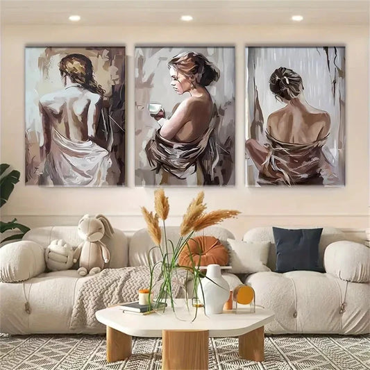 3pcs Scandinavian Nude Female Painting Metal Print Ready to Hang Art