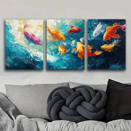 3pcs Featuring An Infinite School Of Fish Metal Print Ready to Hang Art