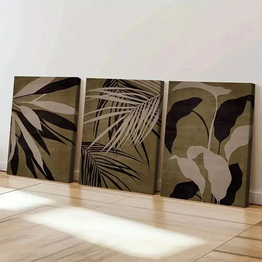 3pcs Abstract Brown Tropical Leaf Print Wall Art Set Canvas Framed 40x60cm - High Quality Print 100% Australian Made Wall Canvas Ready to Hang