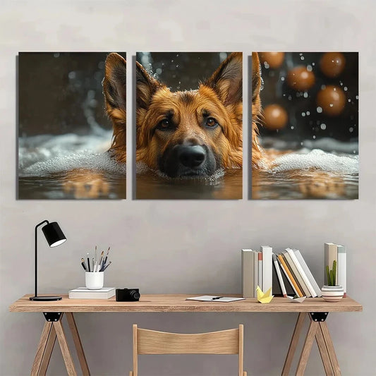 3pcs German Shepherd Dog Bath Golden Balls Metal Print Ready to Hang Art