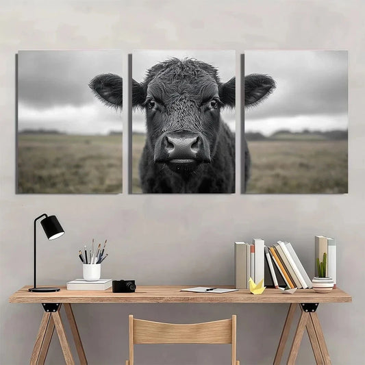 3pcs Black and White land Cow Metal Print Ready to Hang Art