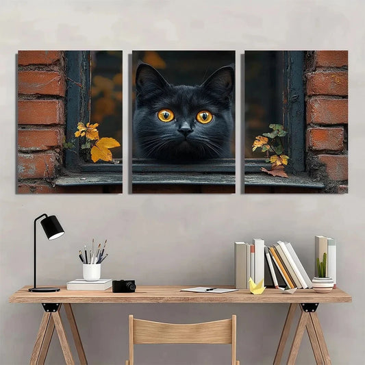 3pcs Classical Style Iron Black Cat Metal Print Ready to Hang Art