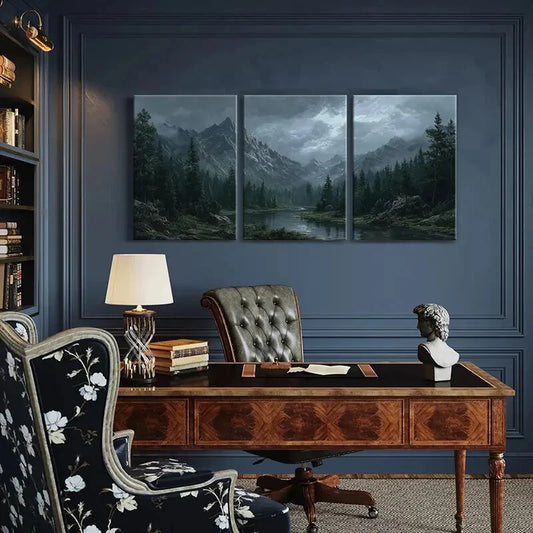 3pcs Mountain Landscape Forest Stream Dark Clouds Metal Print Ready to Hang Art