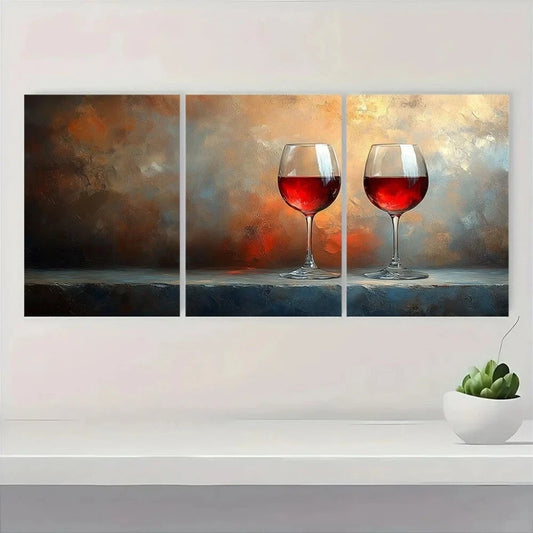 3pcs Red Wine Themed Abstract Tableware Metal Print Ready to Hang Art