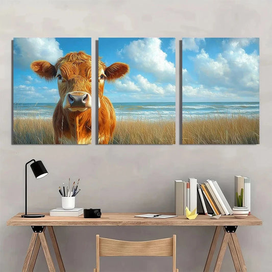 3pcs Vibrant Cow & Pastoral Farm Animal Metal Print Ready to Hang Art