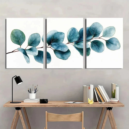 3pcs Elegant Blue & Green Leaf Design Metal Print Ready to Hang Art