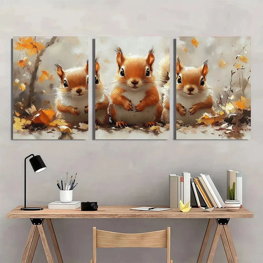 3pcs Squirrel in Nature Scenes Metal Print Ready to Hang Art