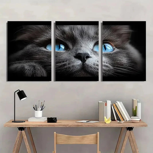 3pcs Whimsical Cat Vibrant Blue-Eyed Kitten Metal Print Ready to Hang Art