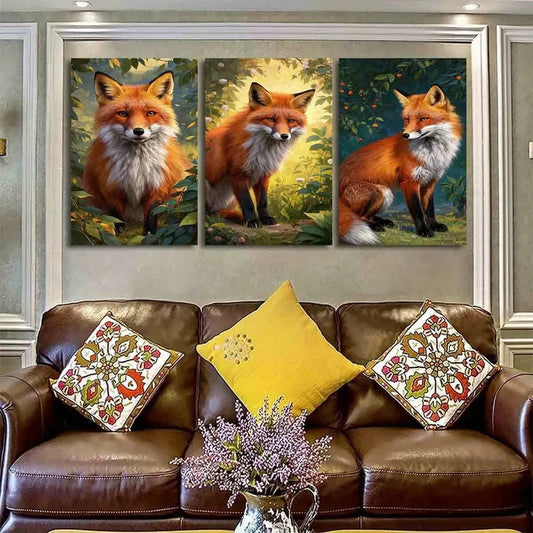 3pcs Lush Foliage & Sunlit Fantasy Fox Metal Print Ready to Hang Art