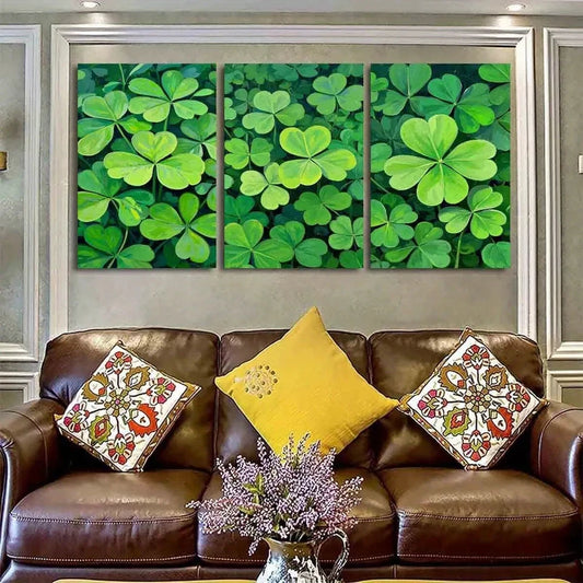 3pcs Vibrant Green Clover Design Metal Print Ready to Hang Art