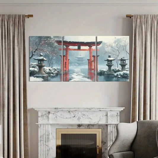 3pcs Landscape Pagoda Serene Atmosphere Metal Print Ready to Hang Art