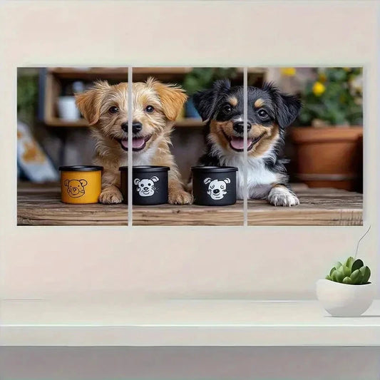 3pcs Adorable Puppy Playful Dog Design Metal Print Ready to Hang Art