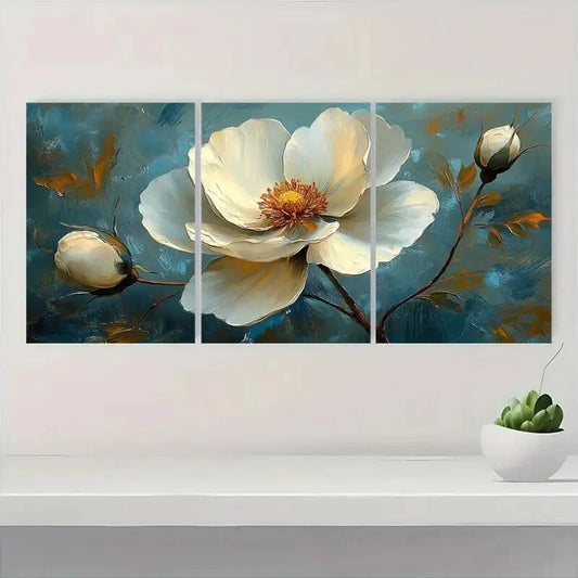 3pcs Elegant White Flower Modern Oil Painting Metal Print Ready to Hang Art