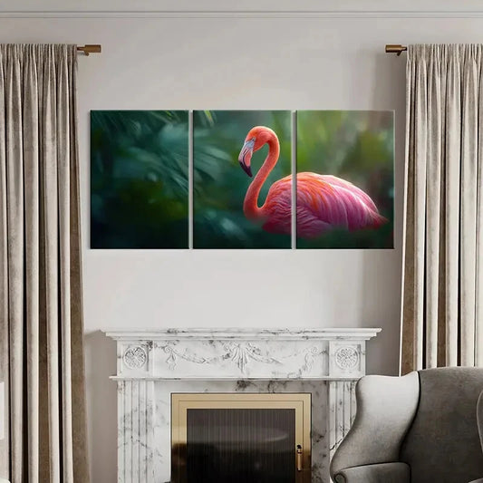 3pcs Flamingo Illustration Tropical Jungle Scene Metal Print Ready to Hang Art