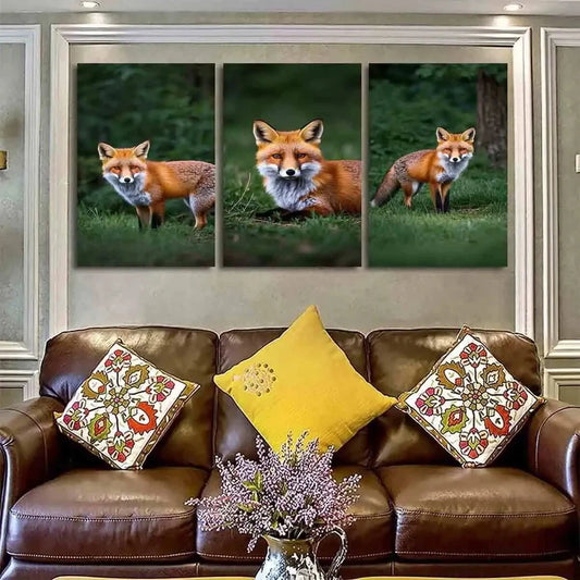 3pcs Vibrant Forest Scene with Foxes Metal Print Ready to Hang Art
