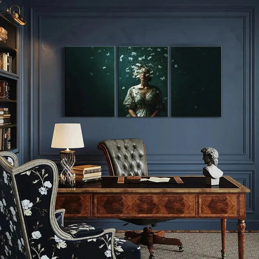 3pcs Artistic Woman Portrait Ethereal Butterfly Metal Print Ready to Hang Art