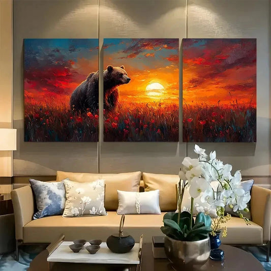 3pcs Grizzly Bear in Tundra Metal Print Ready to Hang Art