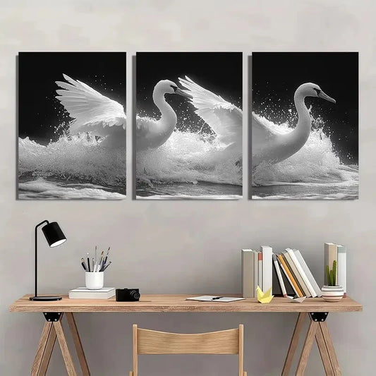 3pcs Black and White Swans White Wings Metal Print Ready to Hang Art