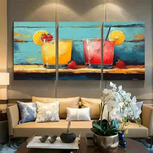 3pcs Elegant Wine & Rose Luxurious Metal Print Ready to Hang Art