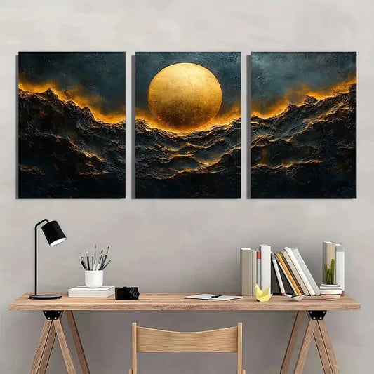 3pcs Abstract Metallic Circle Golden Theme Metal Print Ready to Hang Art