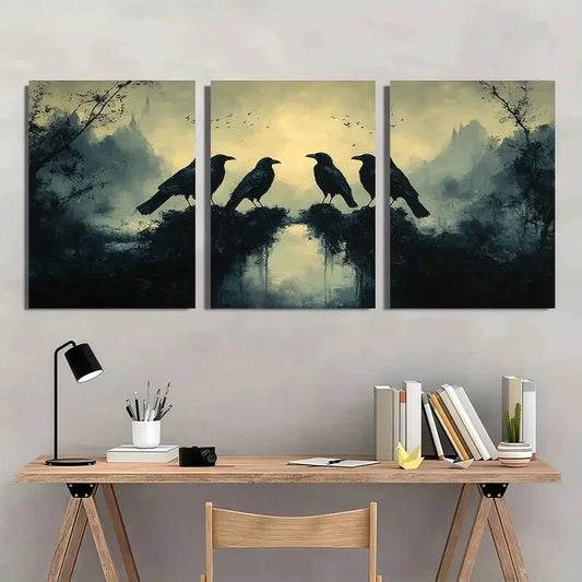 3pcs Elegant Dark Aesthetic Gothic Crow Trio Metal Print Ready to Hang Art