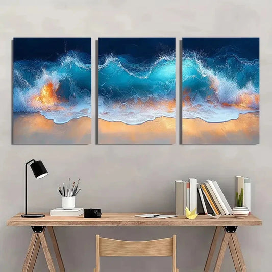 3pcs Modern Ocean Style Color Wave Metal Print Ready to Hang Art